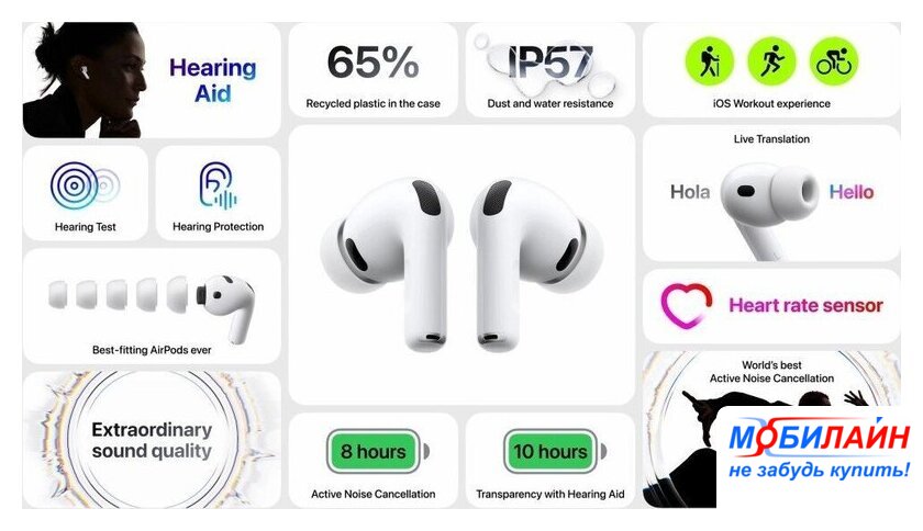 Дополнительные возможности | адаптивный эквалайзер, режим осведомленности (Talk-Through/Aware Mode), встроенный переводчик, удаленное управление камерой смартфона, датчики отслеживания пульса |