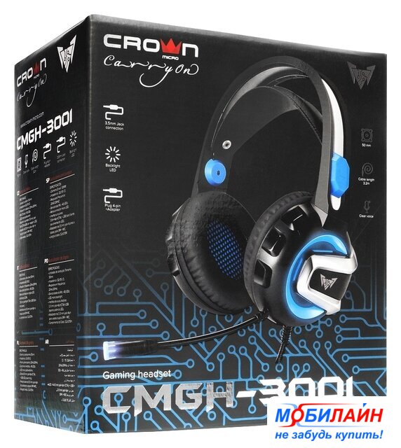 наушники с микрофоном, геймерские, оформление закрытое, излучатель 40 мм, 20-20000 Гц, кабель 2 м