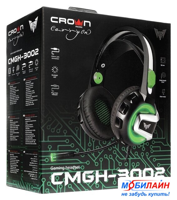 наушники с микрофоном, геймерские, оформление закрытое, излучатель 40 мм, 20-20000 Гц, кабель 2 м