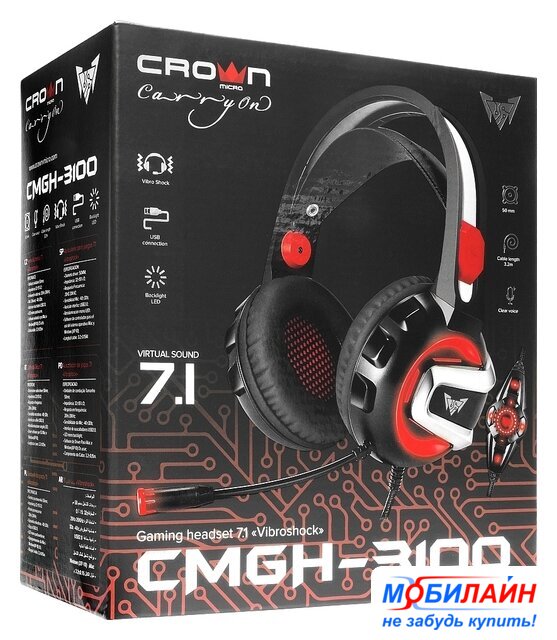 наушники с микрофоном, геймерские, оформление закрытое, излучатель 50 мм, 20-20000 Гц, 32 Ом, кабель 2.3 м