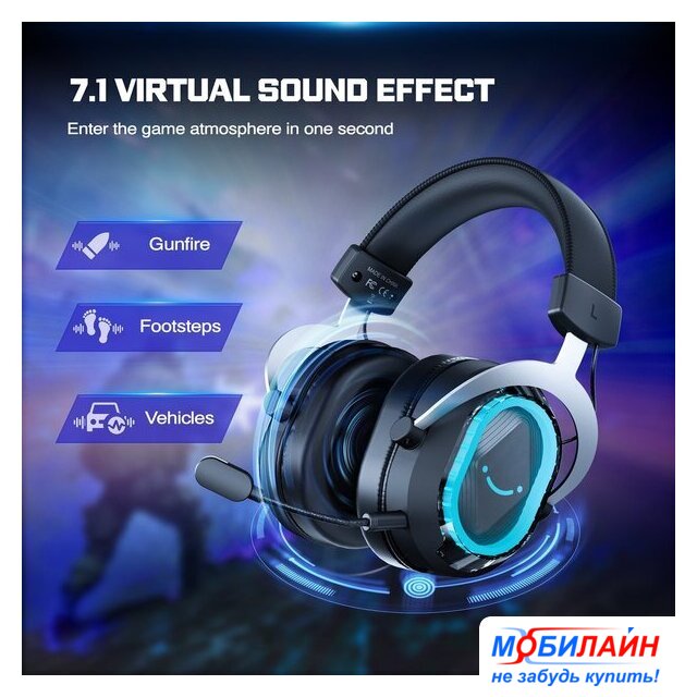 | Функции управления | активация объемного звучания, переключение пресетов эквалайзера, приглушение микрофона (mute), регулировка громкости чата |
