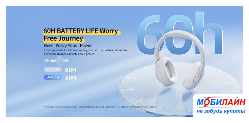 | Макс. время работы от одного заряда | 60 ч (без использования ANC) |