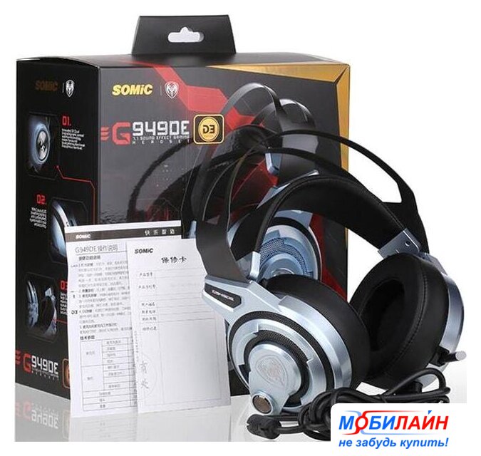 наушники с микрофоном, мониторные (охватывающие), геймерские, 20-20000 Гц, кабель 2 м