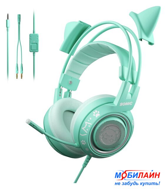 наушники с микрофоном, мониторные (охватывающие), геймерские, 20-20000 Гц, кабель 2 м