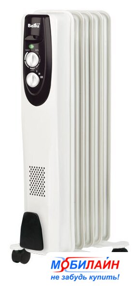 масляный радиатор, 1000 Вт, 5 секций, термостат, управление механическое, площадь обогрева 15 м2