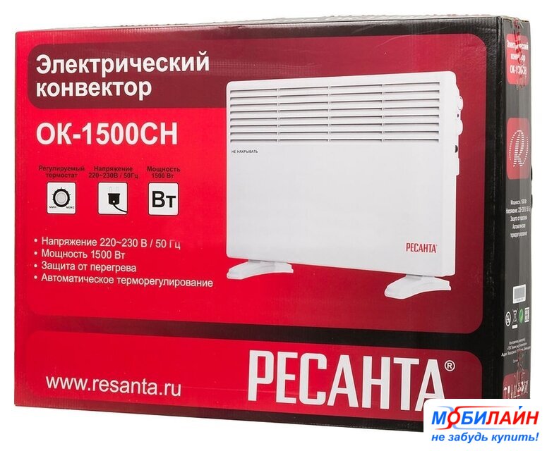 конвектор, 1500 Вт, термостат, возможность крепления на стену, управление механическое