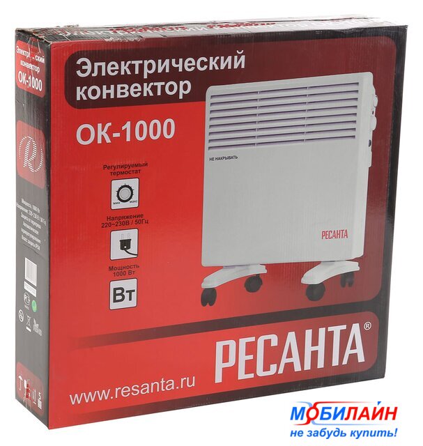 конвектор, 1000 Вт, термостат, возможность крепления на стену, управление механическое