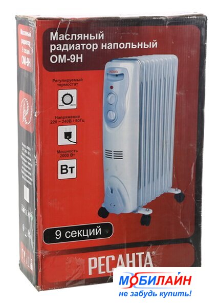 масляный радиатор, 2000 Вт, термостат, управление механическое