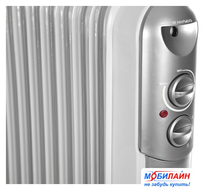 масляный радиатор, 2000 Вт, термостат, управление механическое, площадь обогрева 0-25 м2
