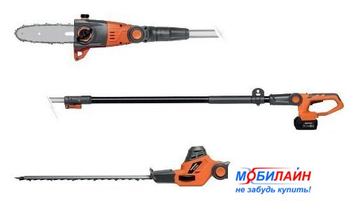 | Варианты комплектации | 1 АКБ 5 Ач, насадка высоторез, насадка кусторез, телескопическая штанга |