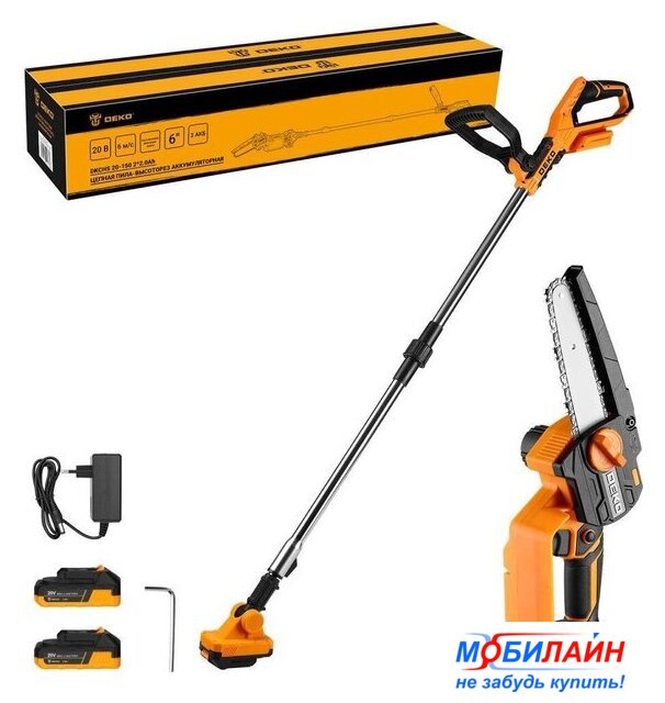 | Комплектация | - Пила (основной корпус) - 1 шт.- Телескопическая штанга с рукояткой - 1 шт.- Аккумулятор 2,0 Ач - 2 шт.- Зарядное устройство - 1 шт.- Шина - 1 шт.- Цепь - 1 шт.- Защитный щиток - 1 шт.- Шестигранный ключ - 1 шт.- Руководство по эксплуатации- Коробка |