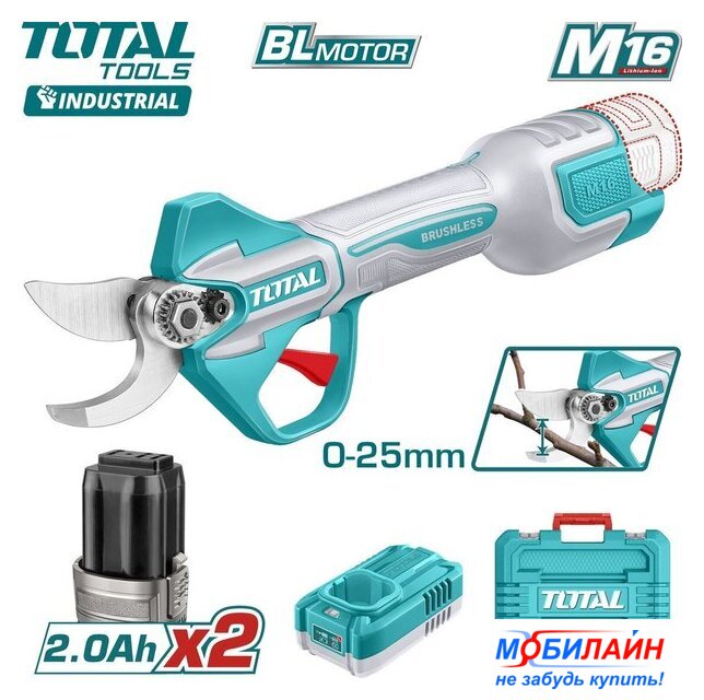 | Комплектация | - Секатор - 1 шт.- Аккумулятор 2,0 Ач TFBLI1620 - 2 шт.- Зарядное устройство TFCLI1613 - 1 шт.- Точильный камень - 1 шт.- Бутылка для масла (пустая) - 1 шт.- Чехол - 1 шт.- Инструкция- Кейс |