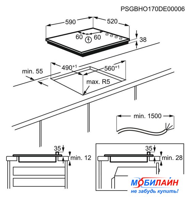 HiLight на 4 конфорки, cтеклокерамика, мощность: 6300 Вт, независимая установка, размеры (ШхГ): 57.6x51.6 см