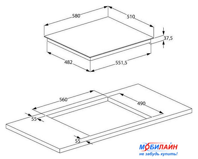 HiLight на 4 конфорки, cтеклокерамика, независимая установка, размеры (ШхГ): 59.5x53 см