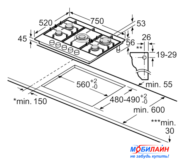Размеры ниши для встраивания |