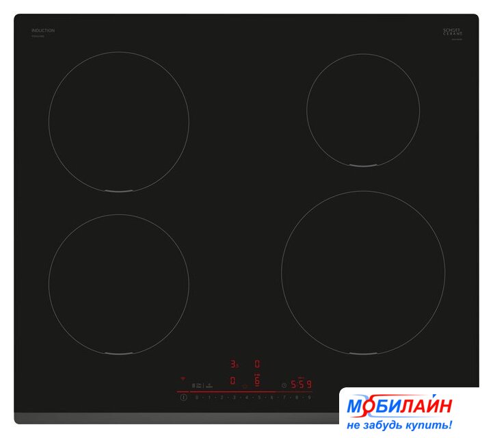 индукционная на 4 конфорки, cтеклокерамика, независимая установка, размеры (ШхГ): 59x52 см