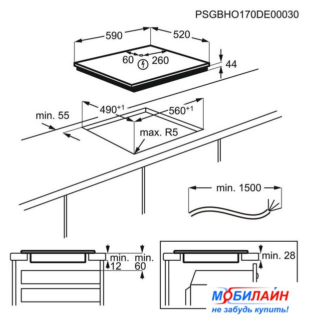 индукционная на 4 конфорки, cтеклокерамика, мощность: 7400 Вт, независимая установка, размеры (ШхГ): 59x52 см