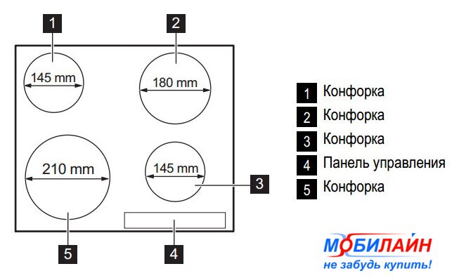 | Индукционные конфорки | нет |