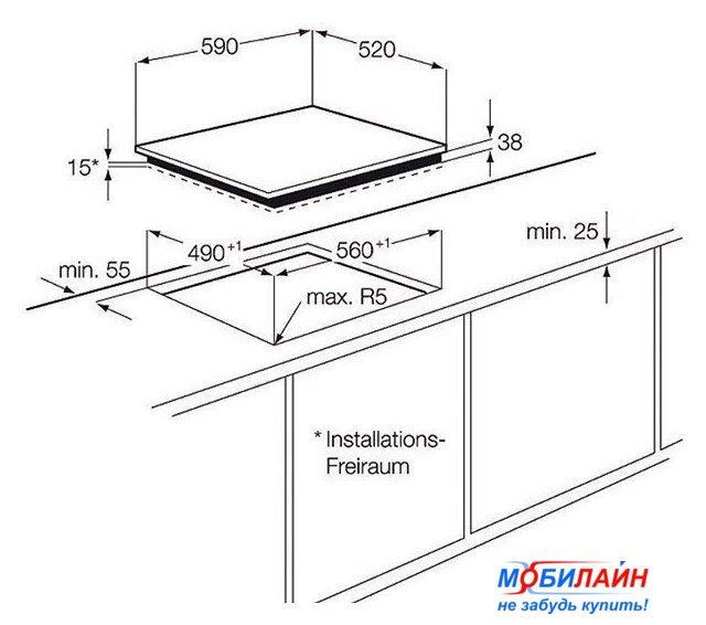 HiLight на 3 конфорки, cтеклокерамика, мощность: 5700 Вт, независимая установка, размеры (ШхГ): 59x52 см