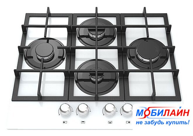 газовая на 4 конфорки, закаленное стекло, мощность: 7000 Вт, автоматический электроподжиг, газ-контроль, решетки: чугун, независимая установка