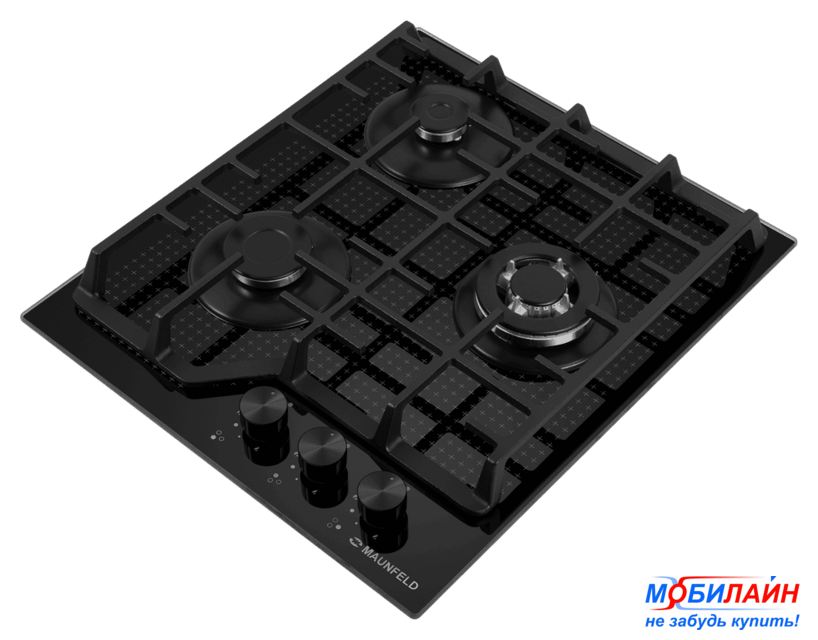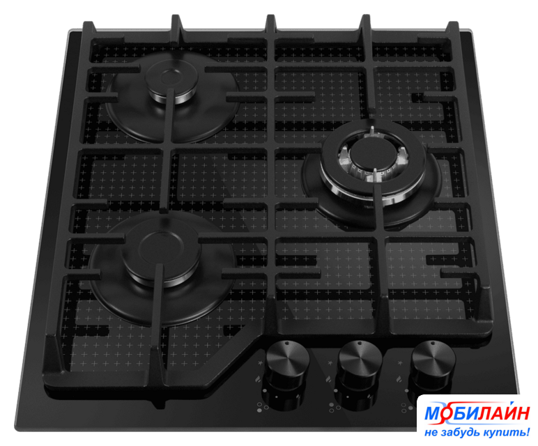 газовая на 3 конфорки, закаленное стекло, мощность: 5950 Вт, автоматический электроподжиг, газ-контроль, решетки: чугун, независимая установка, размеры (ШхГ): 45x52.5 см