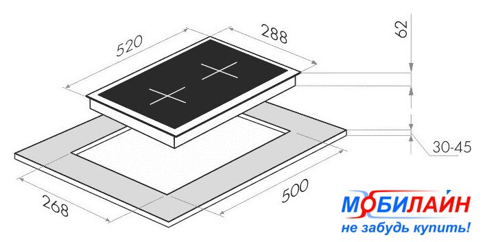 индукционная на 2 конфорки, cтеклокерамика, мощность: 3500 Вт, независимая установка, размеры (ШхГ): 28.8x52 см