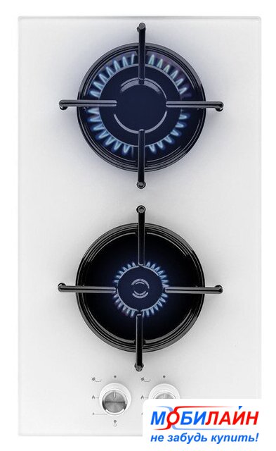 газовая на 2 конфорки, закаленное стекло, мощность: 4000 Вт, автоматический электроподжиг, газ-контроль, решетки: чугун, независимая установка, размеры (ШхГ): 30x52 см
