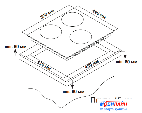 Подробная информация о конфорках | 3000 Вт1750 Вт1000 Вт |