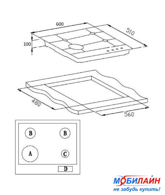 Подробная информация о конфорках | 1*2,4/2*1,8/1*1,0 кВт |