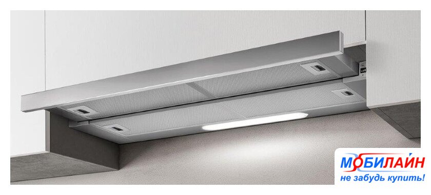 конструкция скрытая, монтаж для встраивания, ширина 51.4 см, управление электронное/кнопочное, производительность вытяжки 550 м³/ч, производительность мотора 1050 м³/ч, цвет нержавеющая сталь