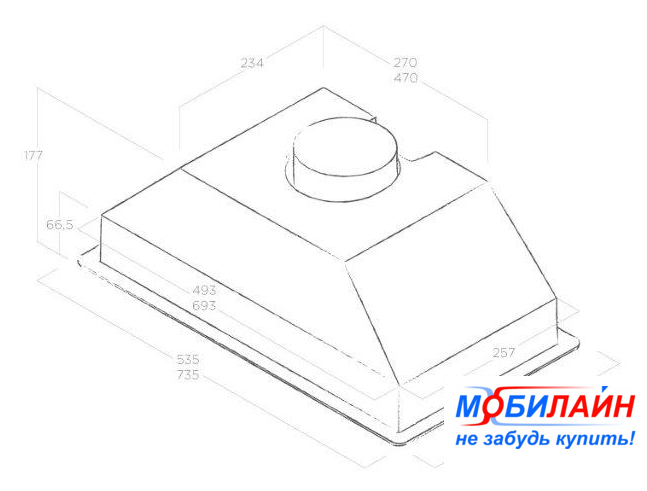 конструкция купольная, монтаж настенный, управление механическое/слайдерное, производительность мотора 650 м³/ч, ширина 59 см