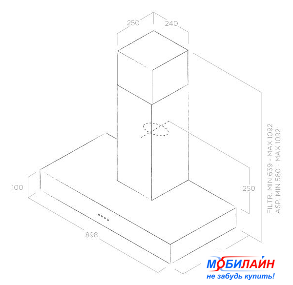 конструкция наклонная, монтаж настенный, ширина 89.6 см, управление сенсорное, производительность мотора 1000 м³/ч, цвет белый