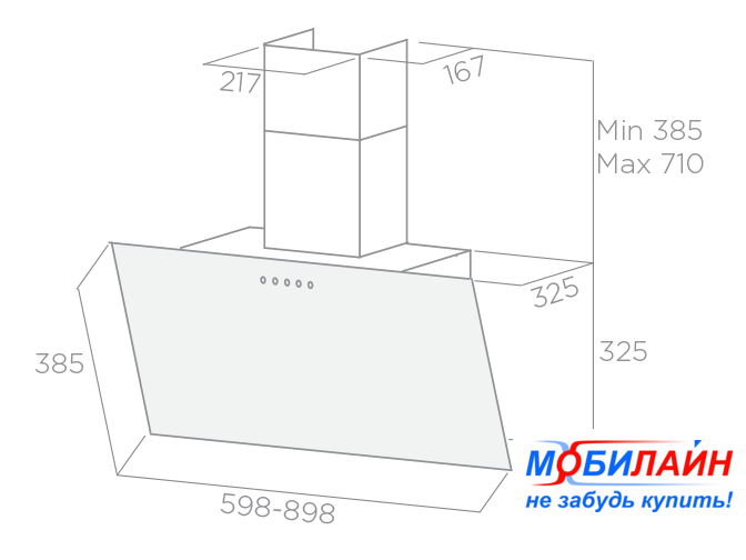 конструкция наклонная, монтаж настенный, ширина 89.6 см, управление сенсорное, производительность мотора 1000 м³/ч, цвет белый