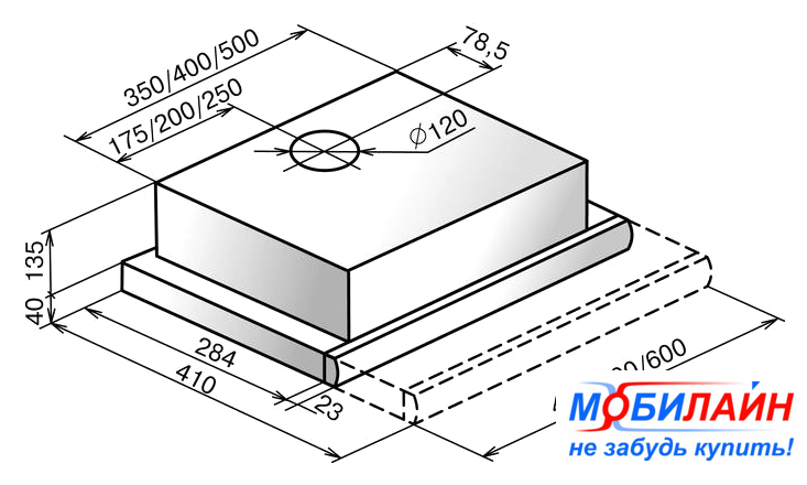 конструкция телескопическая, монтаж для встраивания, управление механическое/кнопочное, производительность мотора 400 м³/ч, ширина 60 см