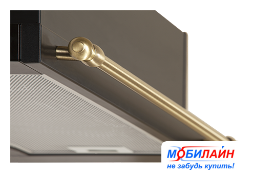 конструкция купольная, монтаж настенный, ширина 50 см, управление механическое/кнопочное, производительность вытяжки 600 м³/ч, цвет коричневый