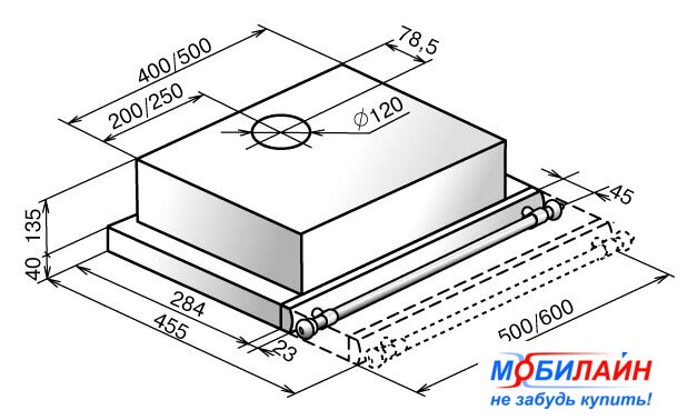 конструкция купольная, монтаж настенный, ширина 50 см, управление механическое/кнопочное, производительность мотора 400 м³/ч, цвет медный