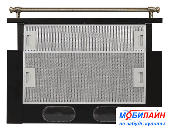 конструкция телескопическая, монтаж для встраивания, ширина 60 см, управление механическое/кнопочное, производительность мотора 650 м³/ч, цвет нержавеющая сталь/черный