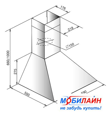 конструкция наклонная, монтаж настенный, ширина 59.5 см, управление механическое/кнопочное, производительность мотора 700 м³/ч, цвет черный