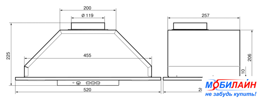 конструкция скрытая, монтаж для встраивания, ширина 59.8 см, управление механическое/кнопочное, производительность мотора 750 м³/ч, цвет черный