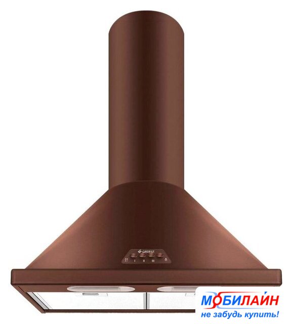 конструкция купольная, монтаж настенный, ширина 50 см, управление механическое/кнопочное, производительность мотора 400 м³/ч, цвет медный
