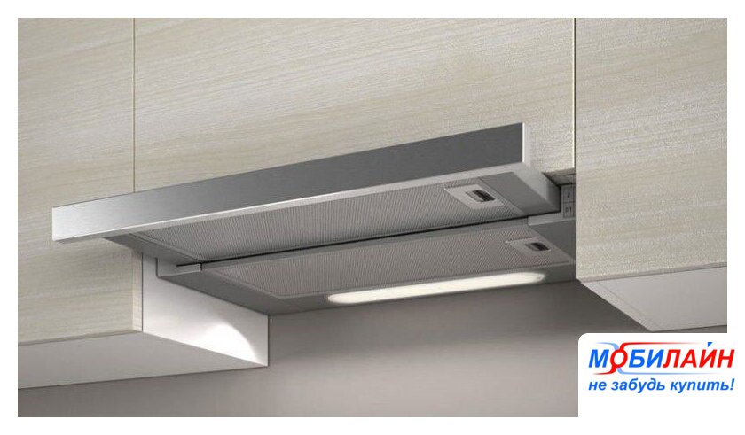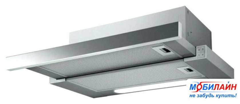конструкция скрытая, монтаж для встраивания, ширина 52 см, управление электронное/кнопочное, производительность мотора 800 м³/ч, цвет нержавеющая сталь