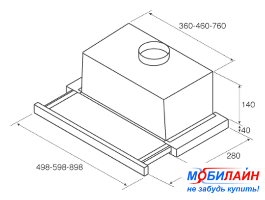 конструкция Т-образная, монтаж настенный, ширина 89.6 см, управление механическое/кнопочное, производительность мотора 650 м³/ч, цвет белый