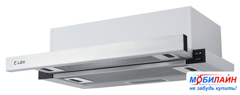 конструкция телескопическая, монтаж для встраивания, управление механическое/кнопочное, производительность мотора 400 м³/ч, ширина 50 см