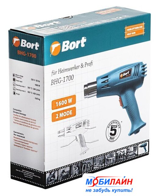 1800 Вт, 300–600 °С, 300–500 л/мин, 0.7 кг