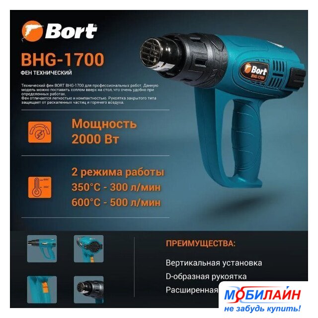 2000 Вт, 350–600 °С, 300–500 л/мин, 0.78 кг