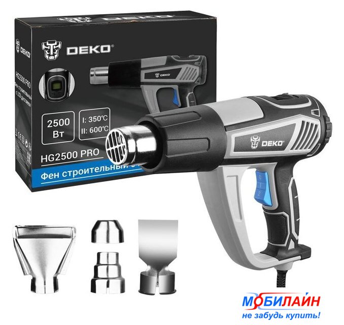 2000 Вт, 60–600 °С, 300–500 л/мин, дисплей, 0.82 кг