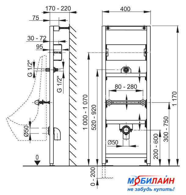 крепление на капитальную стену/на пол/на некапитальную стену, 40x112x10 см