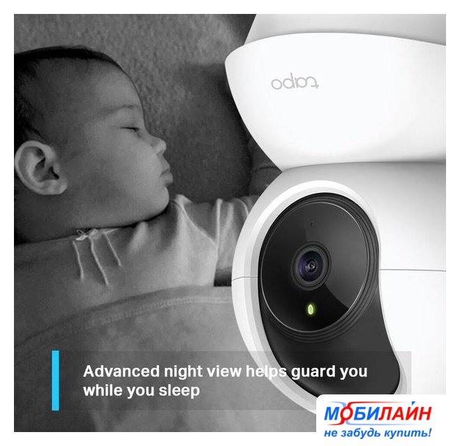 домашняя Wi-Fi камера, настольная поворотная, матрица 1/3" CMOS, 3 МП, объектив F/2 4 мм, ИК подсветка, интерфейс беспроводной, карты памяти SD