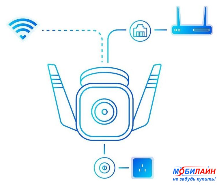 домашняя Wi-Fi камера, настольная поворотная, матрица 1/3.2" CMOS, 3 МП, объектив F/2 3.6 мм, ИК подсветка, интерфейс беспроводной, карты памяти SD