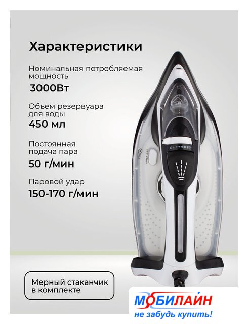 3000 Вт, с пароувлажнением, подошва Techno Ceramic, постоянная подача пара